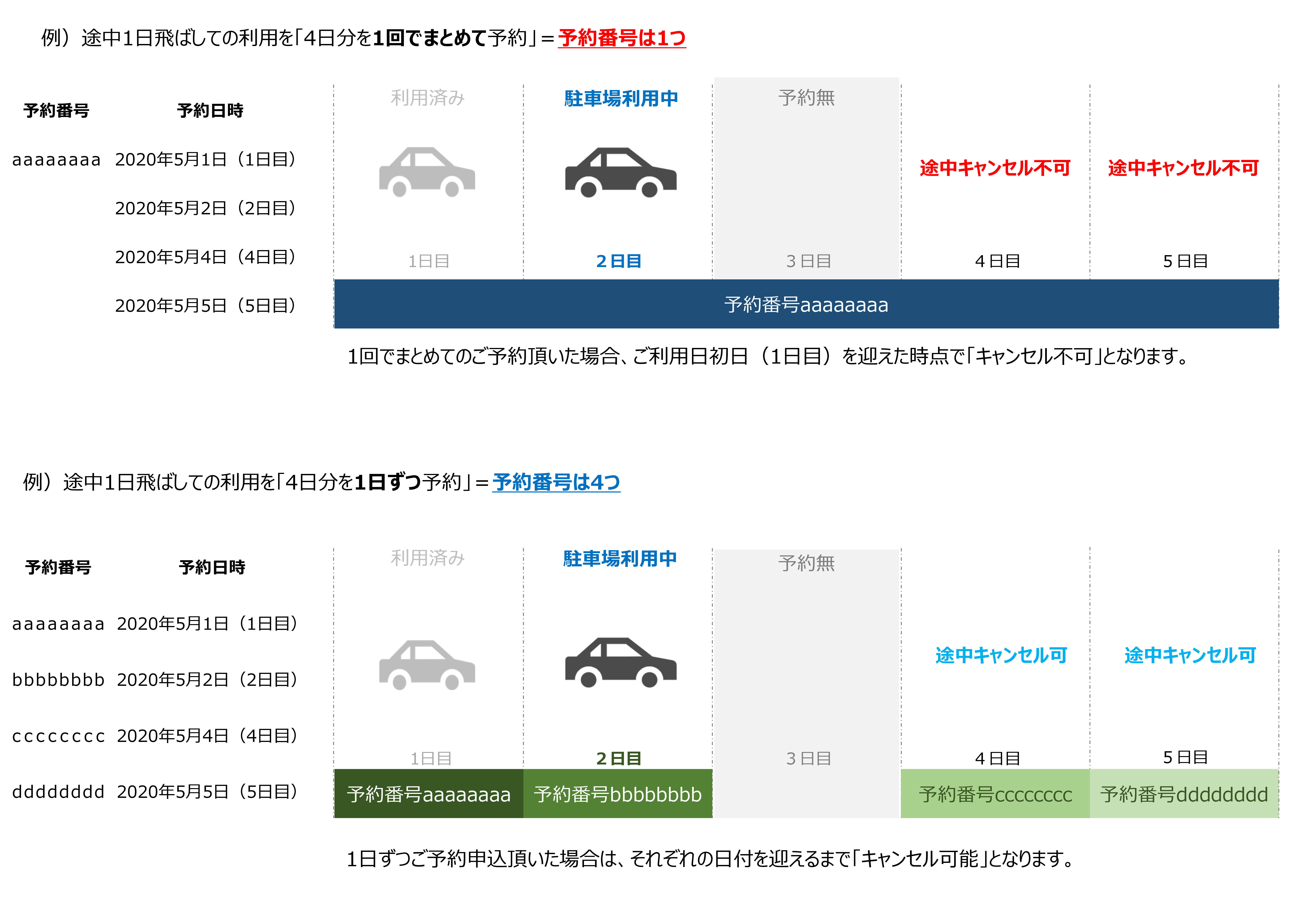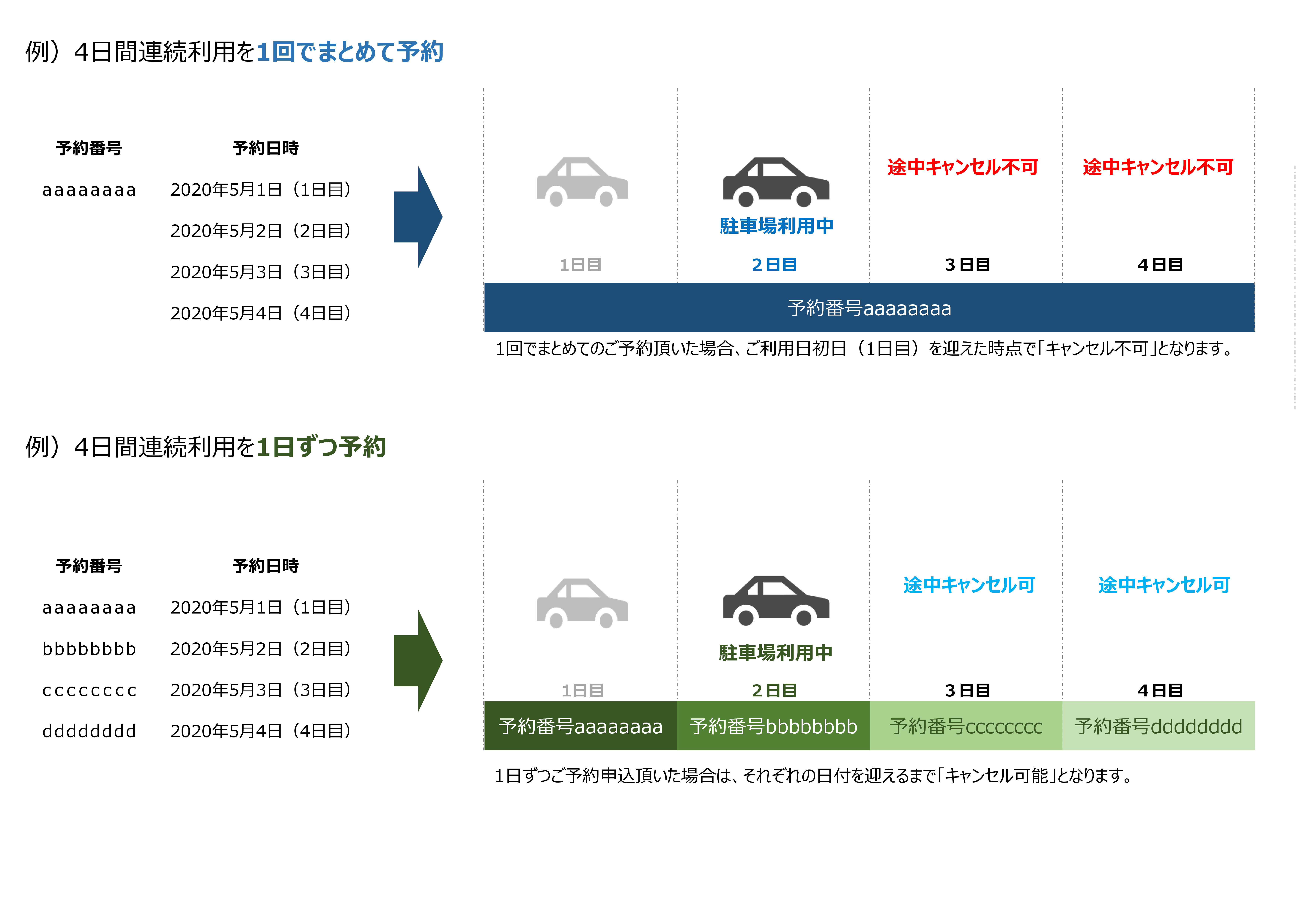 まとめて予約の場合、駐車場ご利用途中でのキャンセルは不可となりますので、